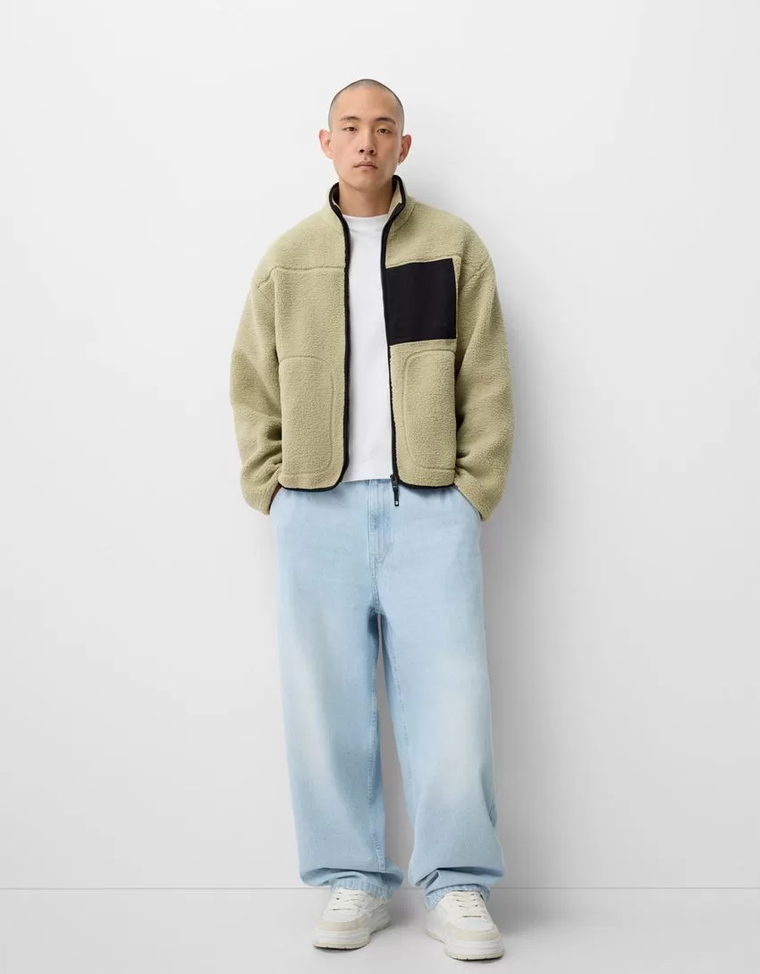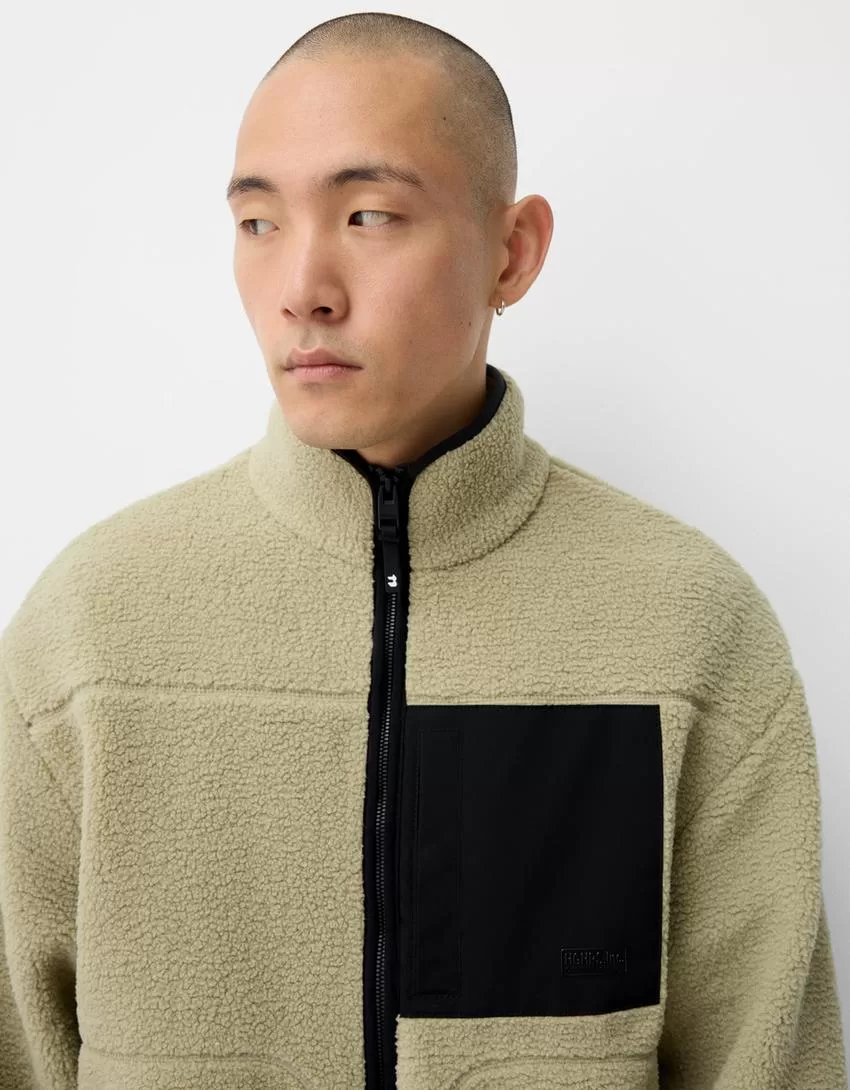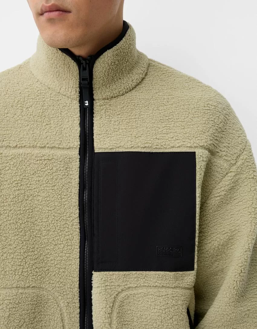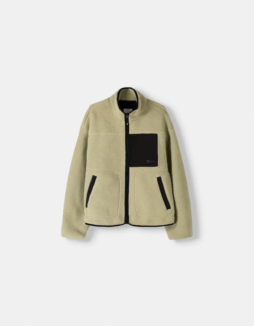 Faux shearling jacket with contrast details