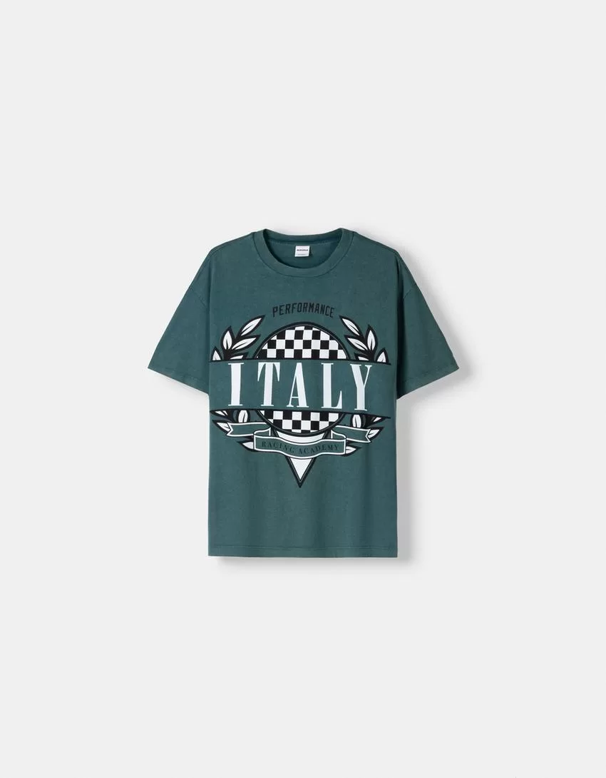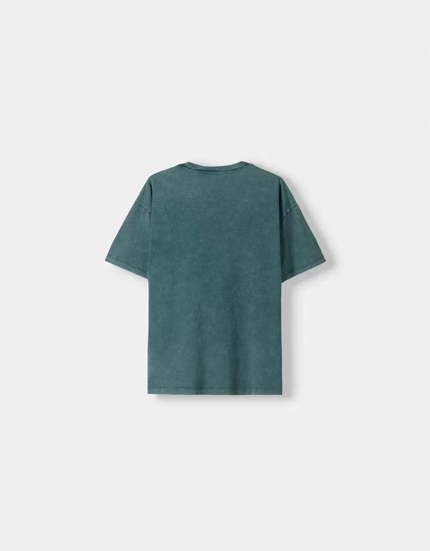Short sleeve faded-effect T-shirt with a print
