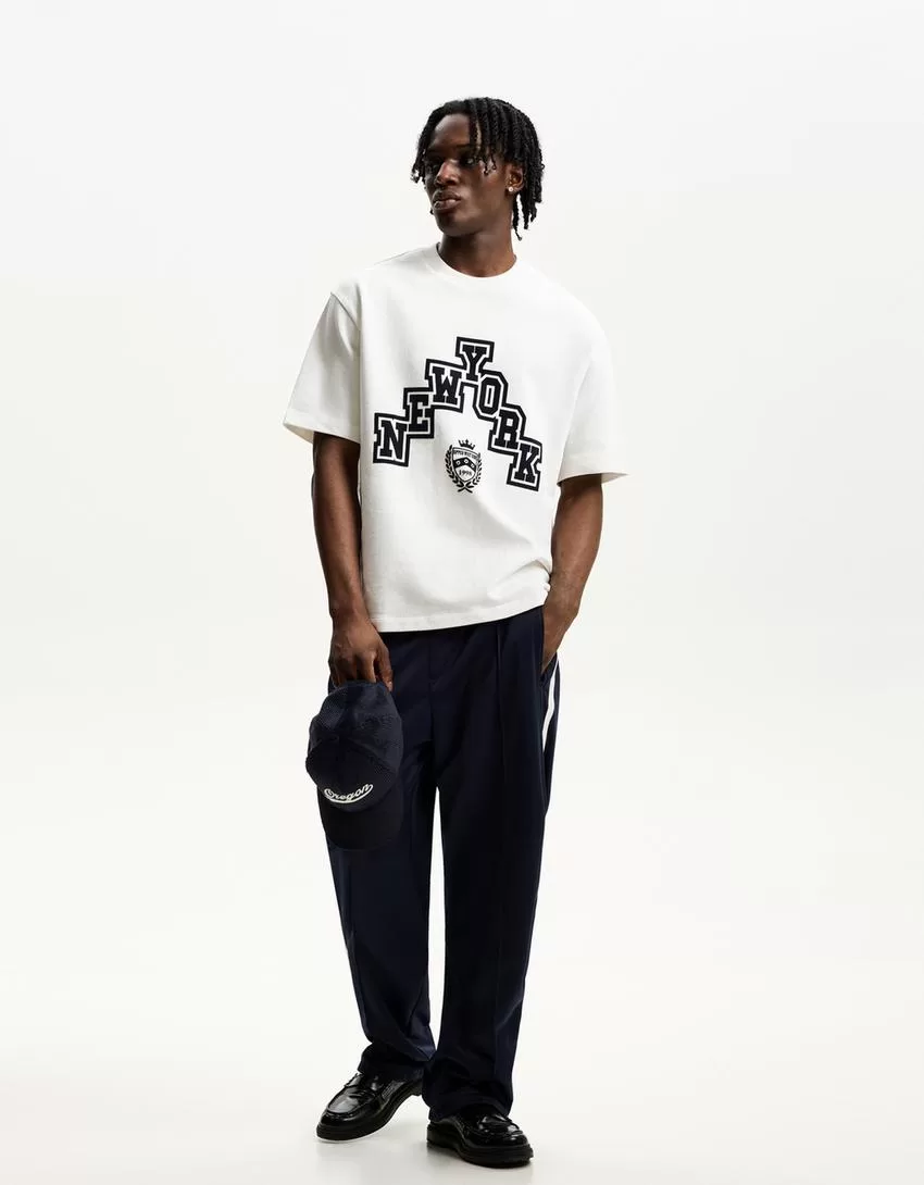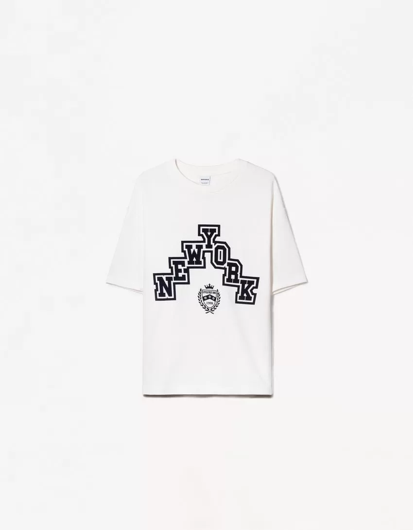 Short sleeve sweatshirt material sporty print T-shirt