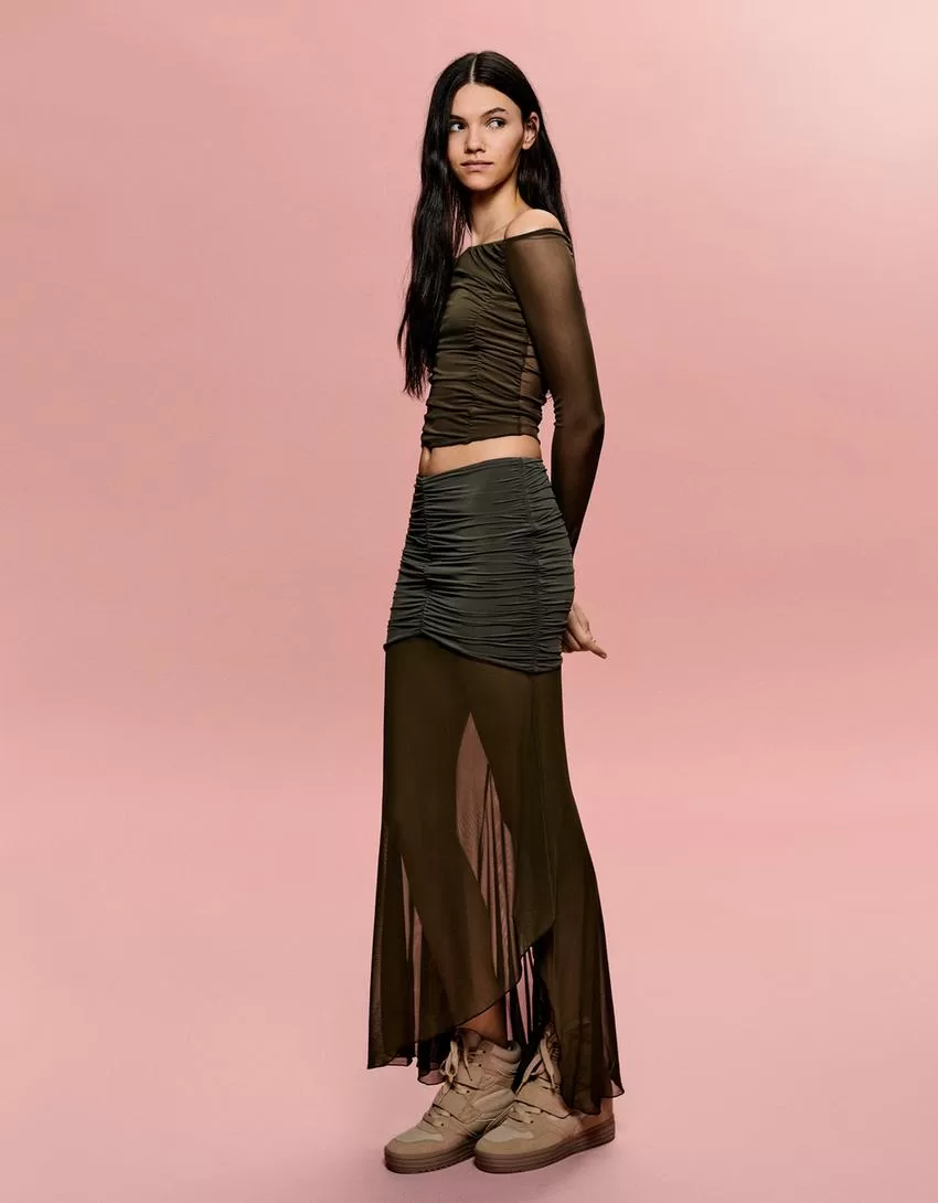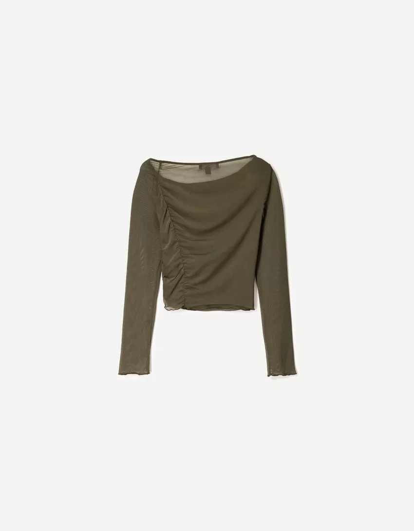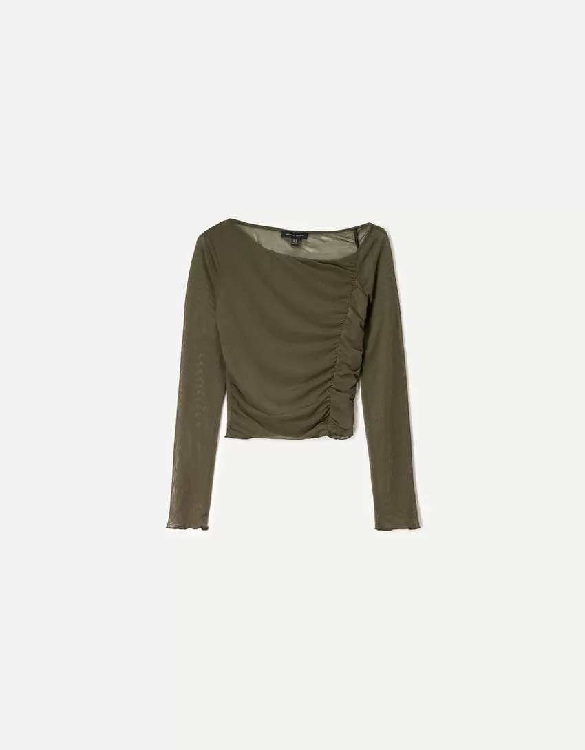 BERSHKA SERIES long sleeve gathered tulle T-shirt