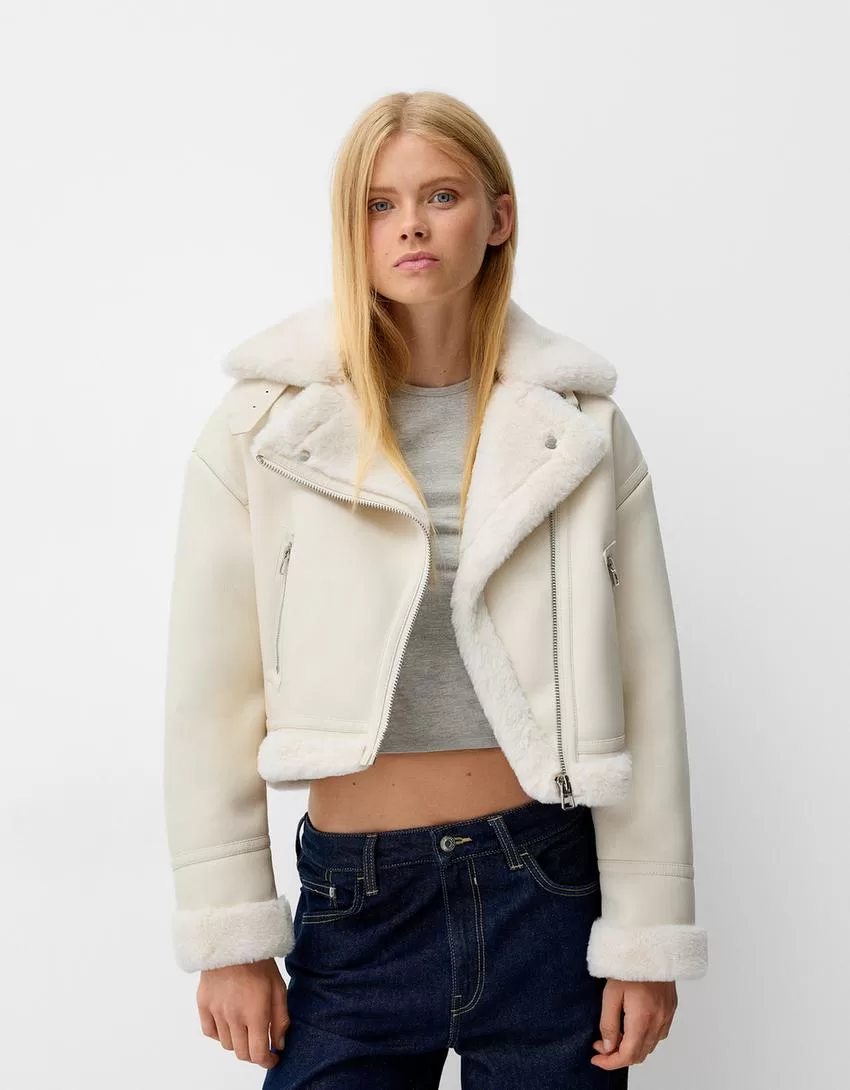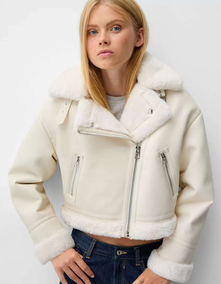 Faux shearling biker jacket