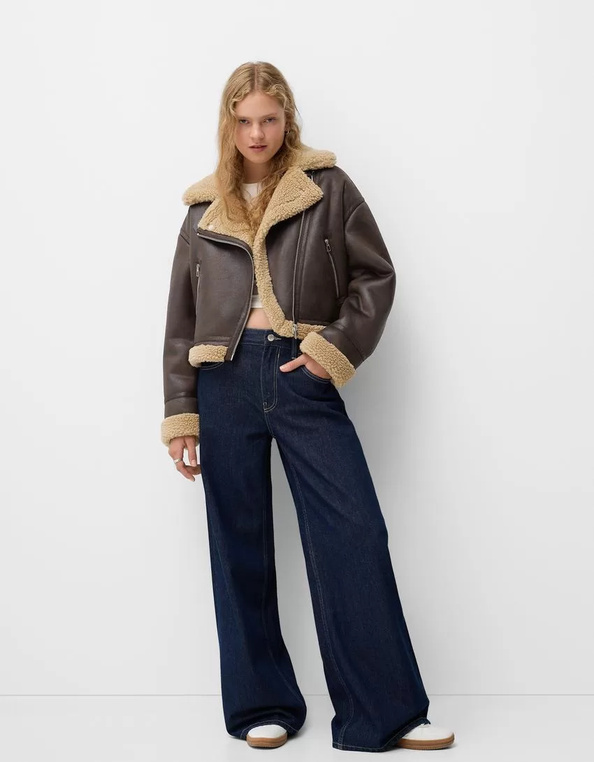 Faux shearling biker jacket