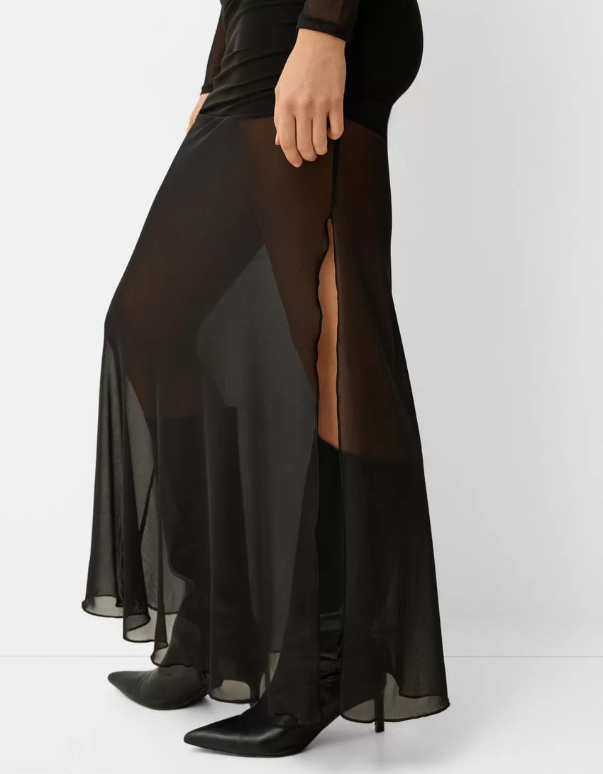 Long sleeve maxi tulle dress