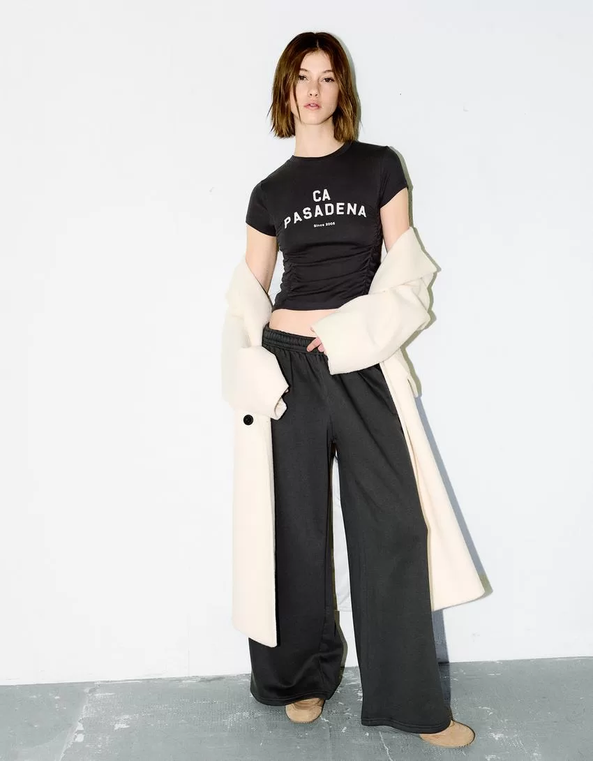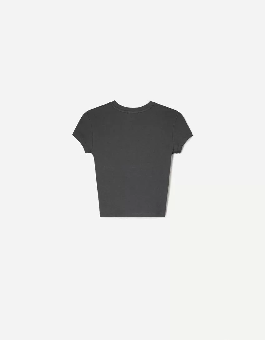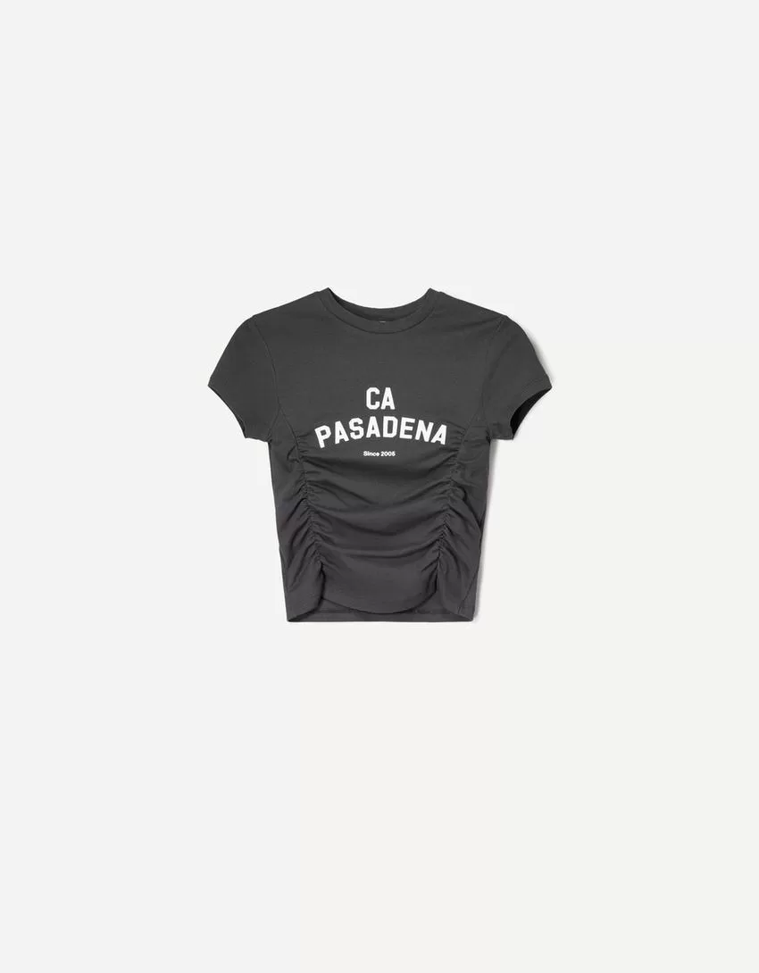 Printed short sleeve T-shirt with gathering