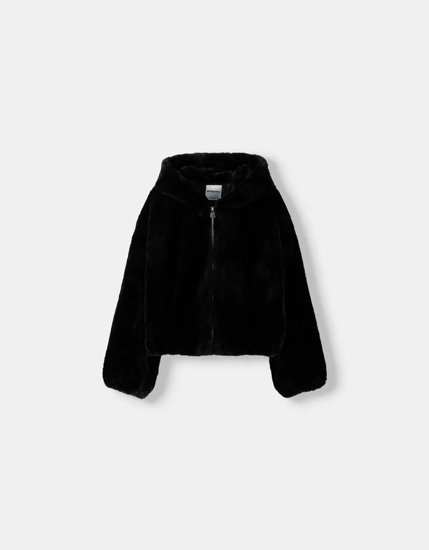 Quilted jacket with faux fur hood
